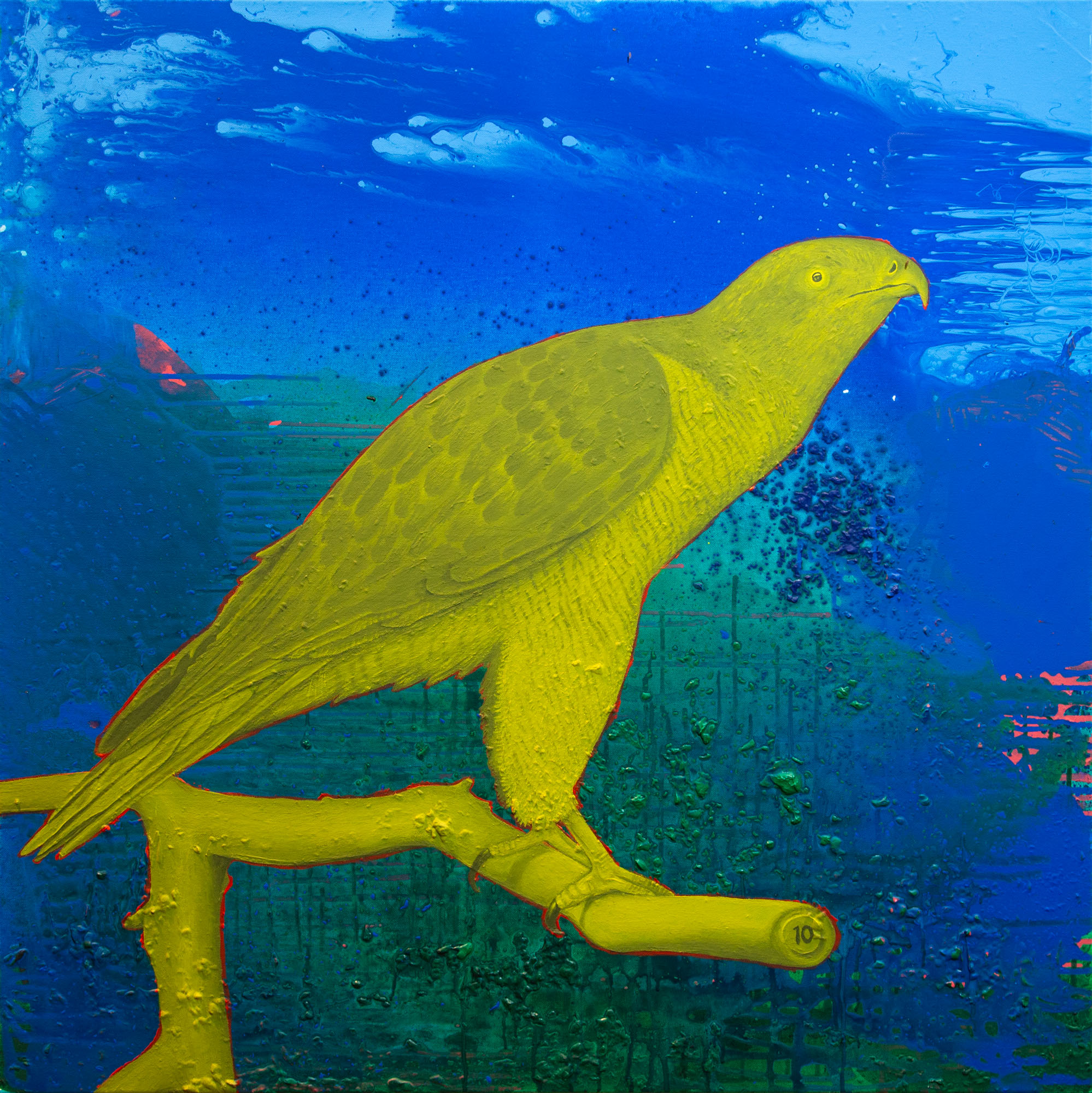 Diese Erfahrung verbindet Ken Nwadiogbu mit der Erinnerung an Menschen und Orte. So sind die Farben und Muster seiner Arbeiten von der Landschaft Lübens inspiriert. Ausgehend von der Sammlung ausgestopfter Vögel im Lübener Dorfmuseum schuf er zudem ein Gemälde mit einem Adler als Motiv.