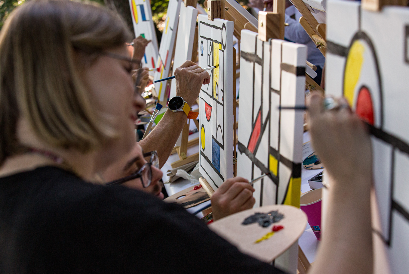 Beim After-Work-Abend konnten die Teilnehmenden in kreativer Atmosphäre Malen und Zeichnen erleben. Im Mondrian-Workshop entstanden farbenfrohe Kompositionen inspiriert von moderner Kunst, während im Aktzeichenkurs erfahrene Zeichner*innen ihre Technik verfeinerten. Ein Abend, der Kunst, Begegnung und Inspiration miteinander verband.
